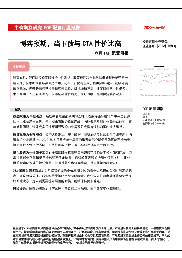 【中信期货】【20230606】六月FOF配置月报:博弈预期,当下债与CTA性价比高-23页