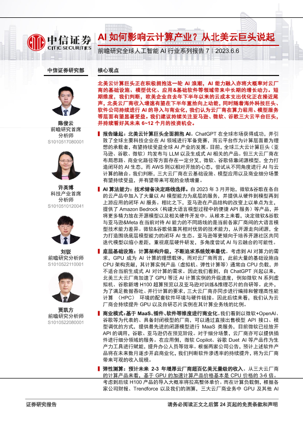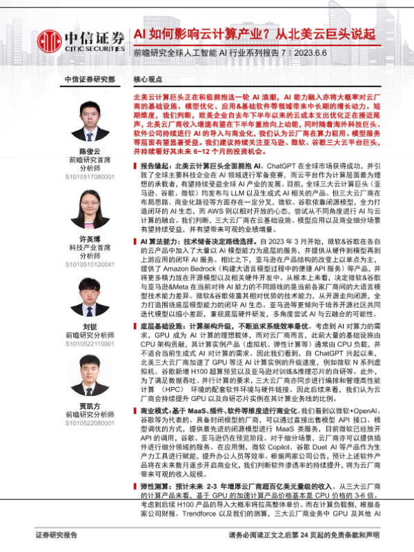 【中信证券】【20230606】AI如何影响云计算产业?从北美云巨头说起-25页