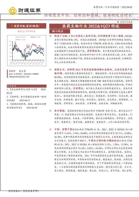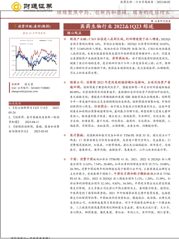 【财通证券】【20230602】医药生物行业2022&1Q23综述:继续聚焦中药、创新药和器械、服务的疫后增长-26页