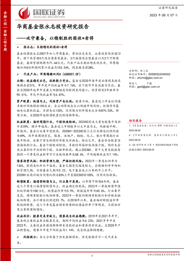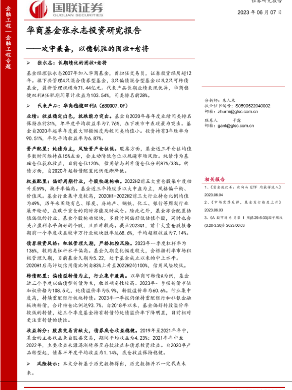 【国联证券】【20230607】华商基金张永志投资研究报告:攻守兼备,以稳制胜的固收+老将-20页
