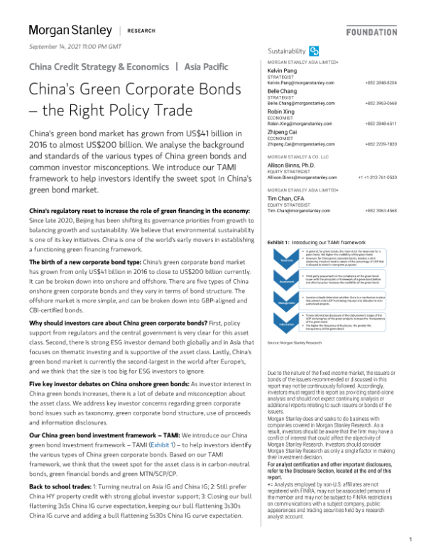 【Morgan Stanley】【20210914】中国的绿色企业债券:正确的贸易政策-44页