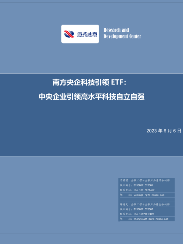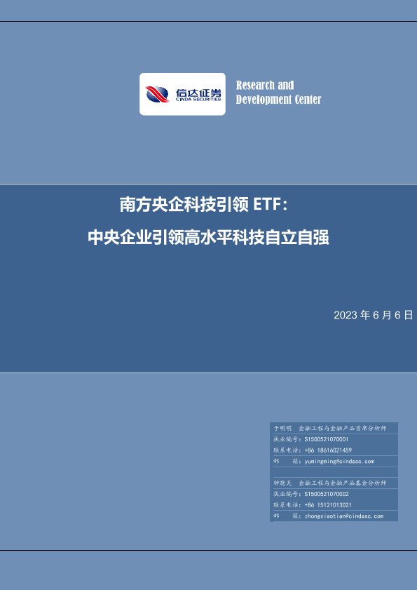 【信达证券】【20230606】南方央企科技引领ETF:中央企业引领高水平科技自立自强-20页