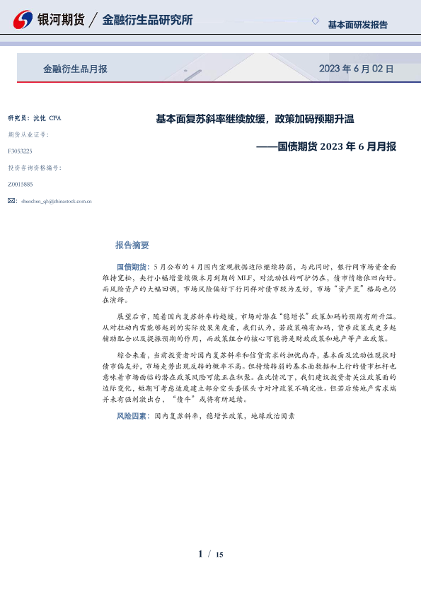 【银河期货】【20230602】国债期货2023年6月月报:基本面复苏斜率继续放缓,政策加码预期升温-15页