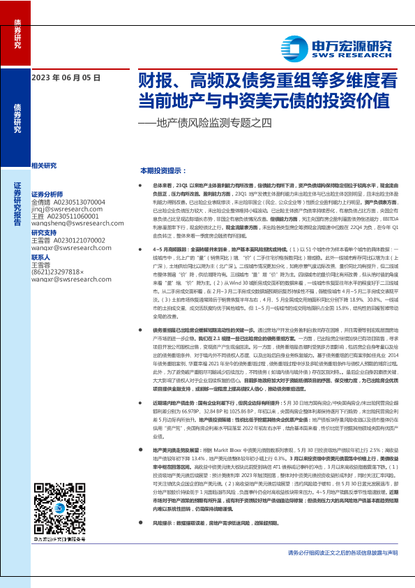 【申万宏源】【20230605】财报、高频及债务重组等多维度看当前地产与中资美元债的投资价值-23页