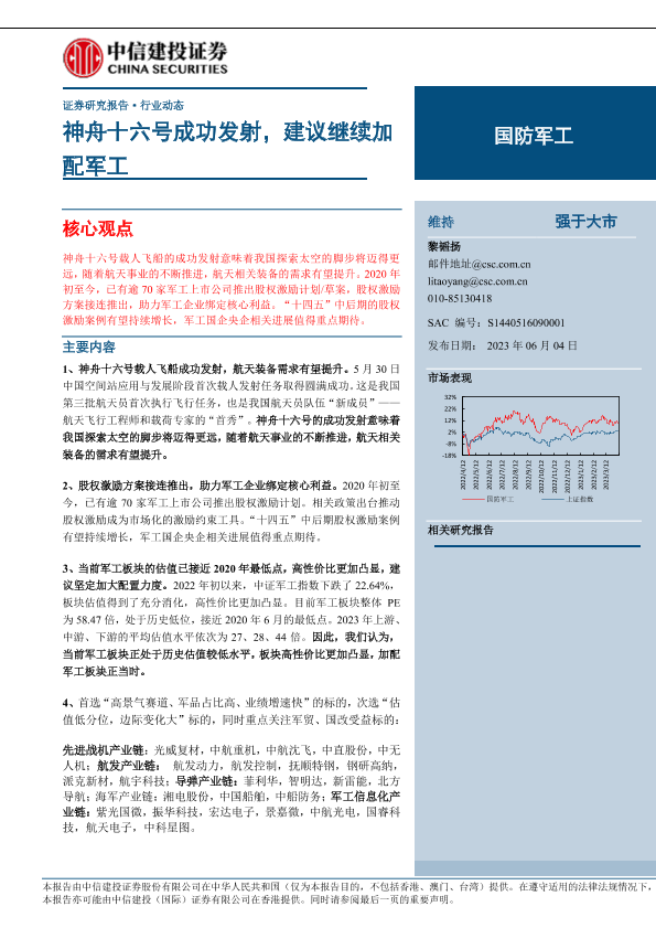 【中信建投证券】【20230604】国防军工行业:神舟十六号成功发射,建议继续加配军工-34页