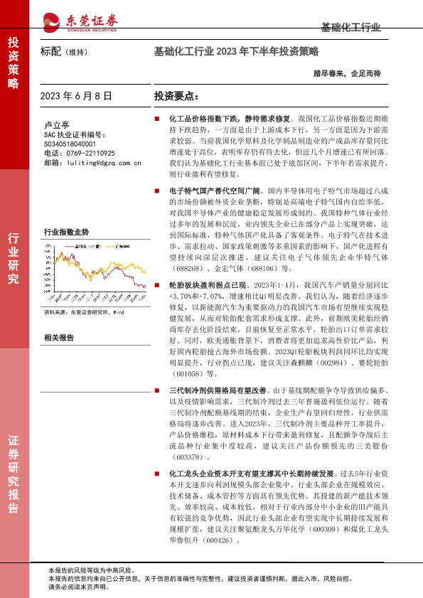 【东莞证券】【20230608】基础化工行业2023年下半年投资策略:腊尽春来,企足而待-37页