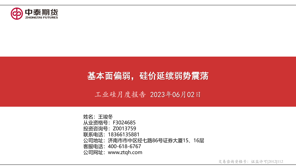 【中泰期货】【20230602】工业硅月度报告:基本面偏弱,硅价延续弱势震荡-20页