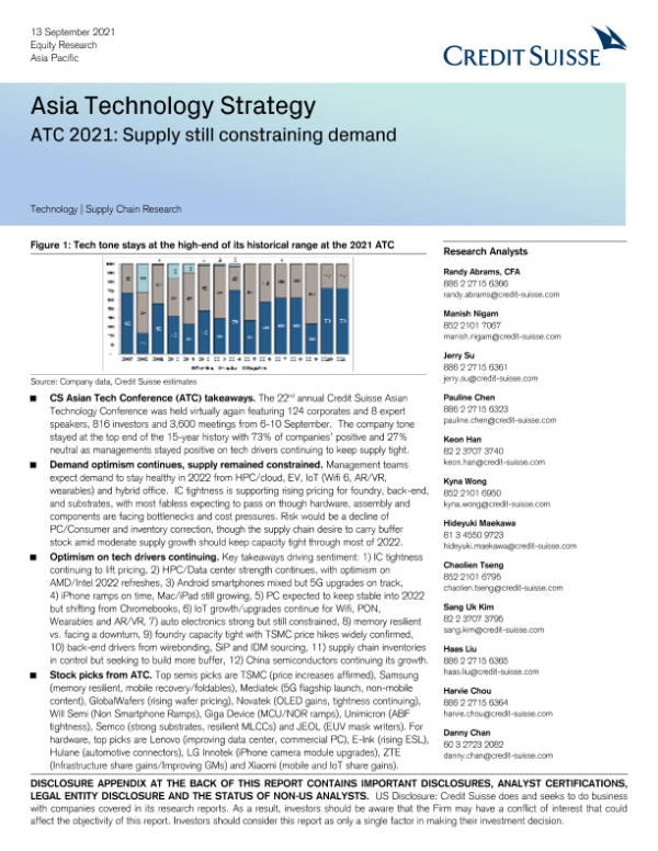 【Credit Suisse】【20210913】瑞信-亚太地区投资策略-2021年亚洲科技大会:供应仍限制需求-112页