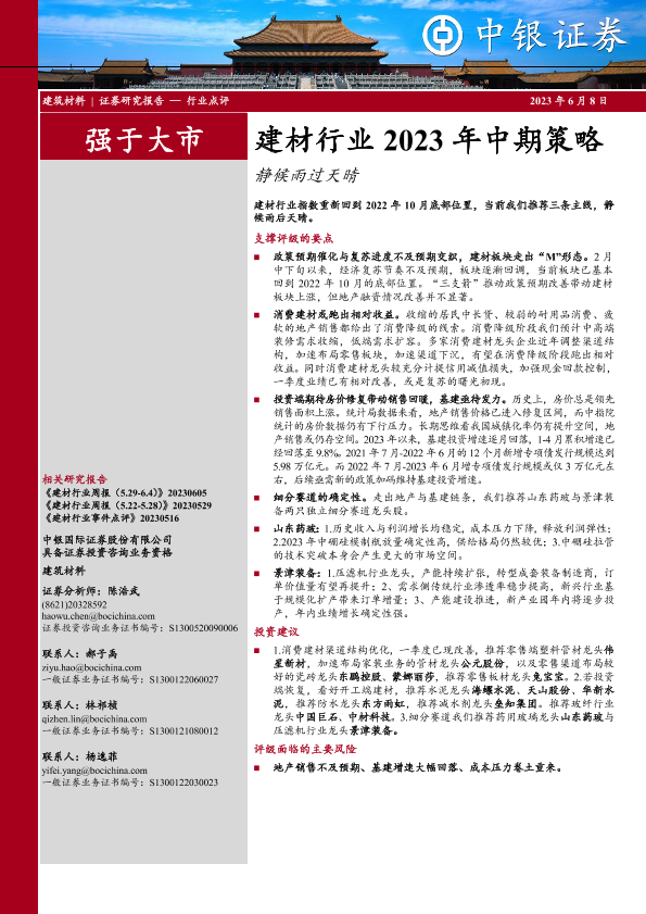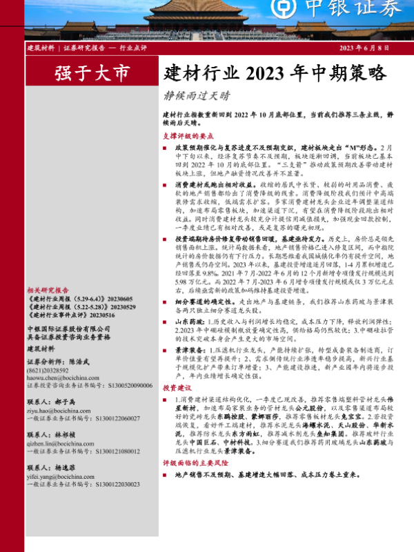 【中银证券】【20230608】建材行业2023年中期策略:静候雨过天晴-28页