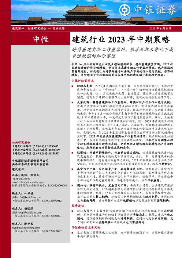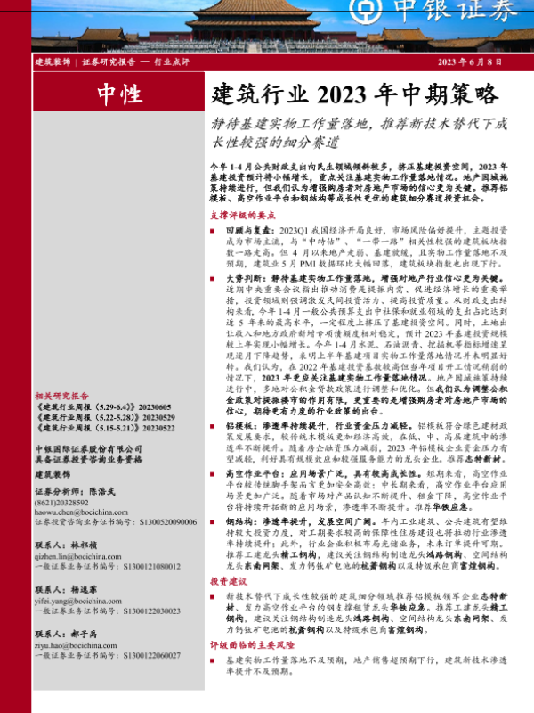 【中银证券】【20230608】建筑行业2023年中期策略:静待基建实物工作量落地,推荐新技术替代下成长性较强的细分赛道-32页