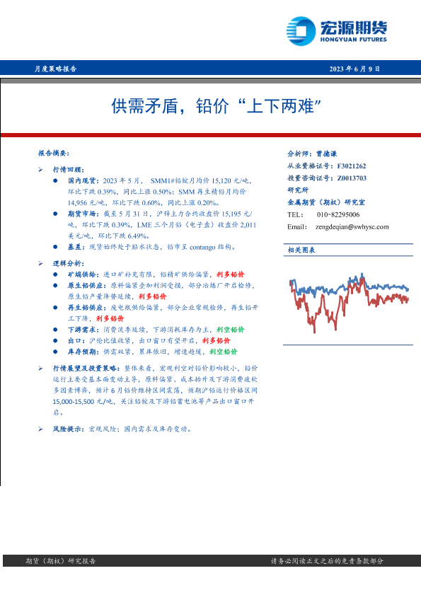 【宏源期货】【20230609】月度策略报告:供需矛盾,铅价“上下两难”-20页