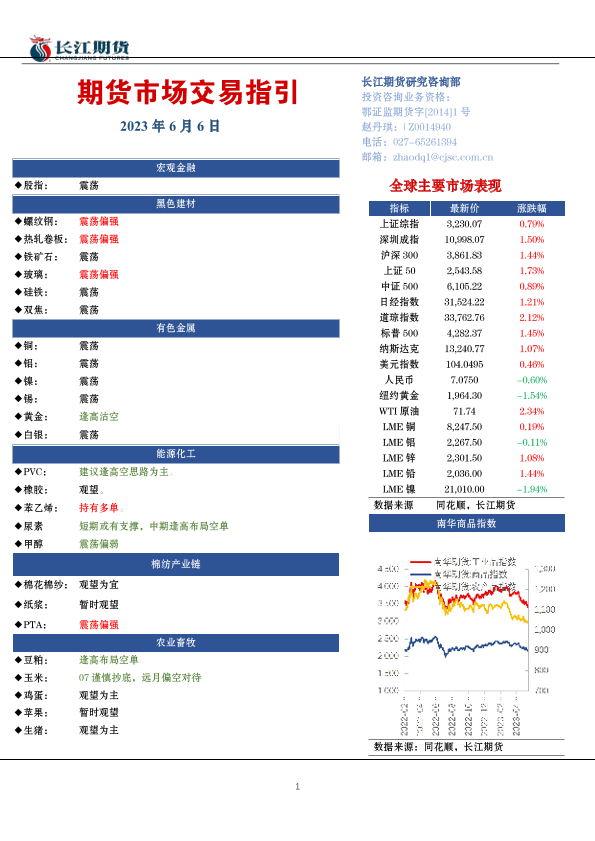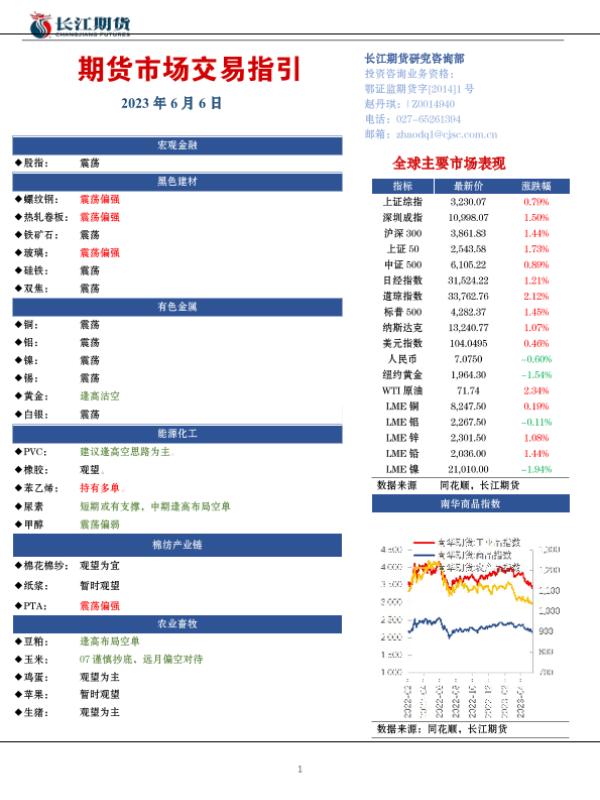 交易指引 商品指数 宏观经济 期货市场 长江期货