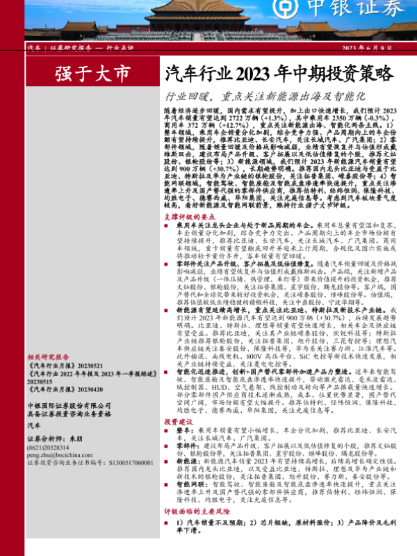 【中银证券】【20230608】汽车行业2023年中期投资策略:行业回暖,重点关注新能源出海及智能化-44页