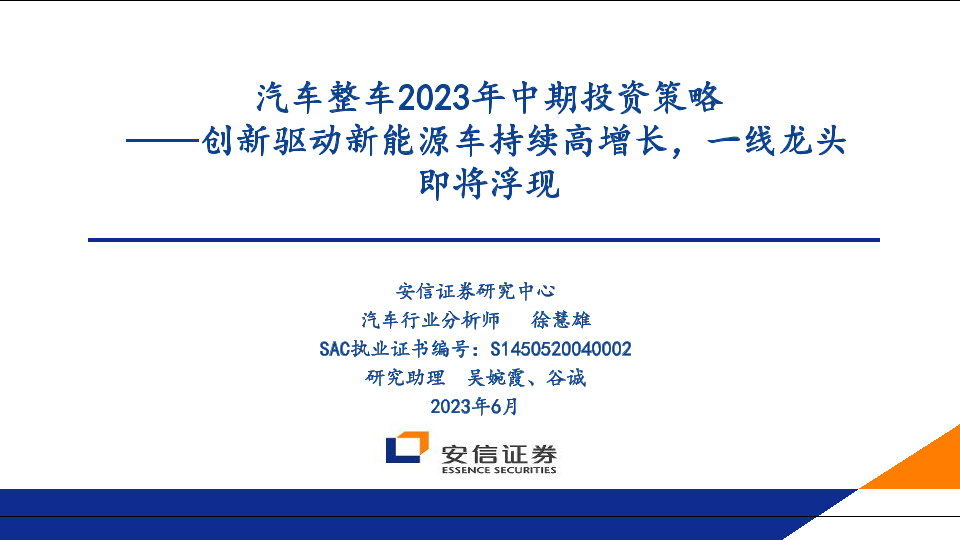 【安信证券】【20230607】汽车行业整车2023年中期投资策略:创新驱动新能源车持续高增长,一线龙头即将浮现-46页