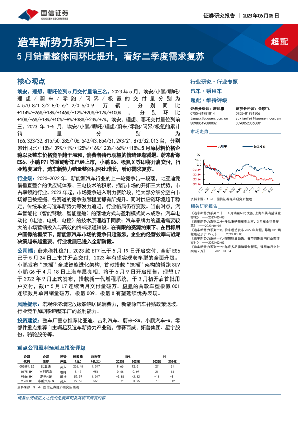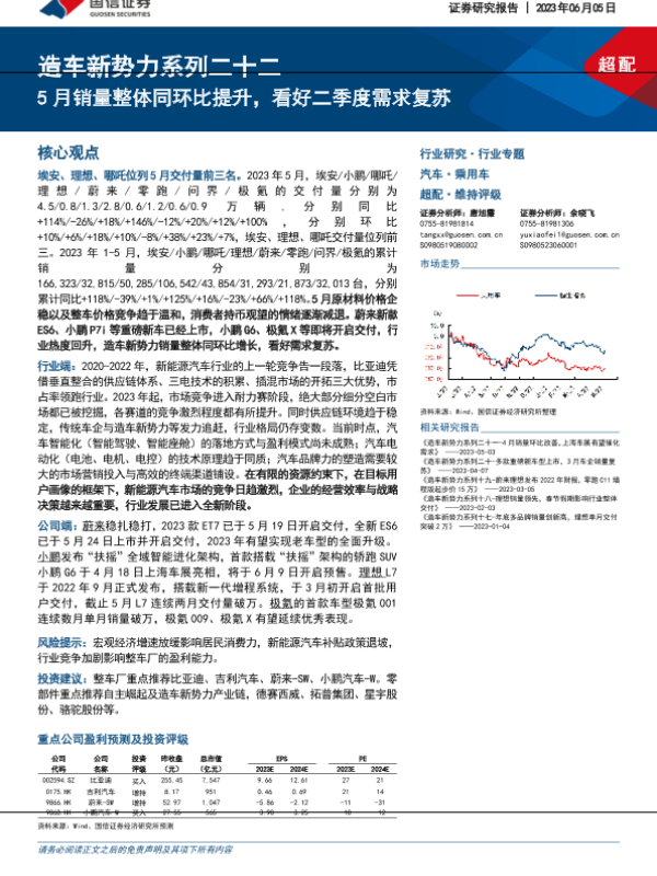 【国信证券】【20230605】汽车行业造车新势力系列二十二:5月销量整体同环比提升,看好二季度需求复苏-32页