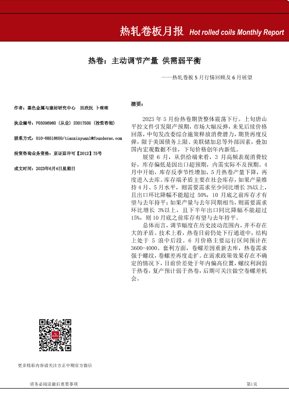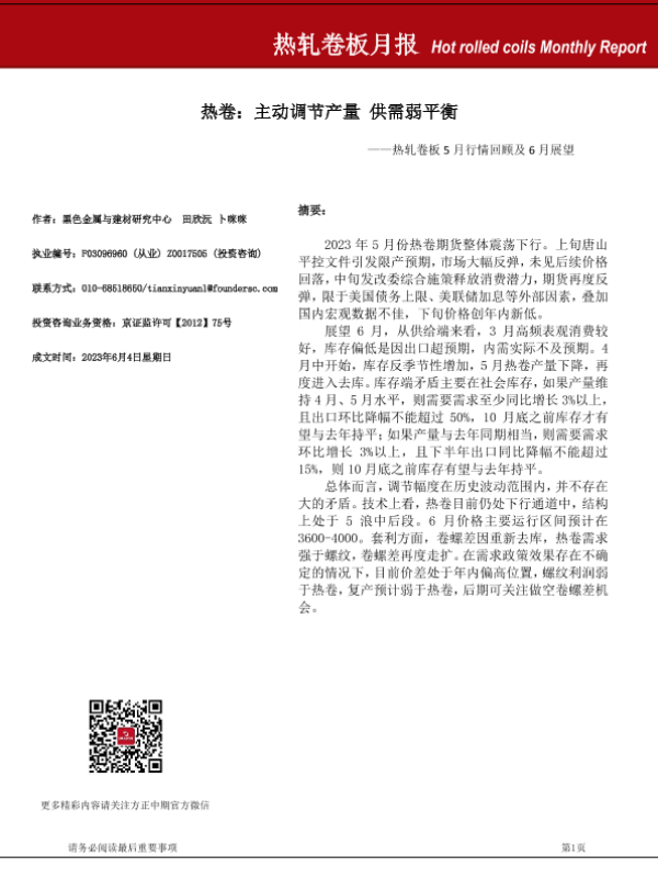 【方正中期期货】【20230604】热卷:主动调节产量供需弱平衡——热轧卷板5月行情回顾及6月展望-19页