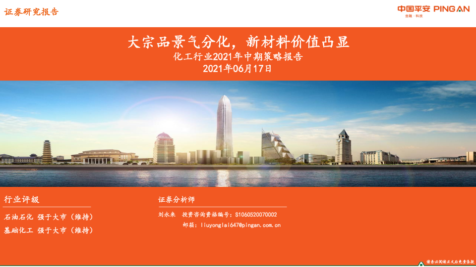 【平安证券】【20210617】化工行业2021年中期策略报告:大宗品景气分化,新材料价值凸显-31页