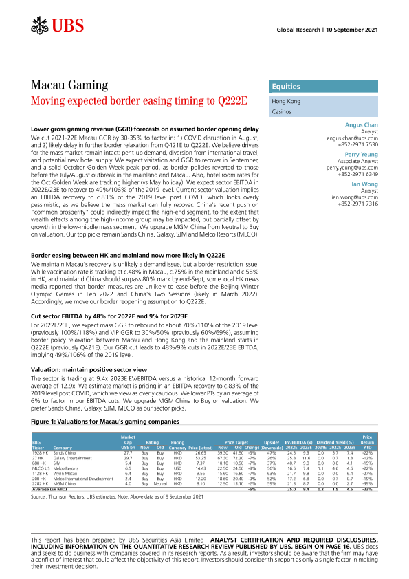 【瑞银】【20210910】瑞银-中国博彩业-澳门博彩:将预期的边界放宽时间调整到2022年第二季度-23页