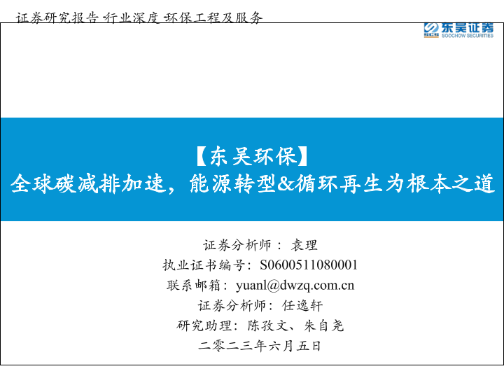 【东吴证券】【20230605】环保工程及服务行业:全球碳减排加速,能源转型&循环再生为根本之道-96页