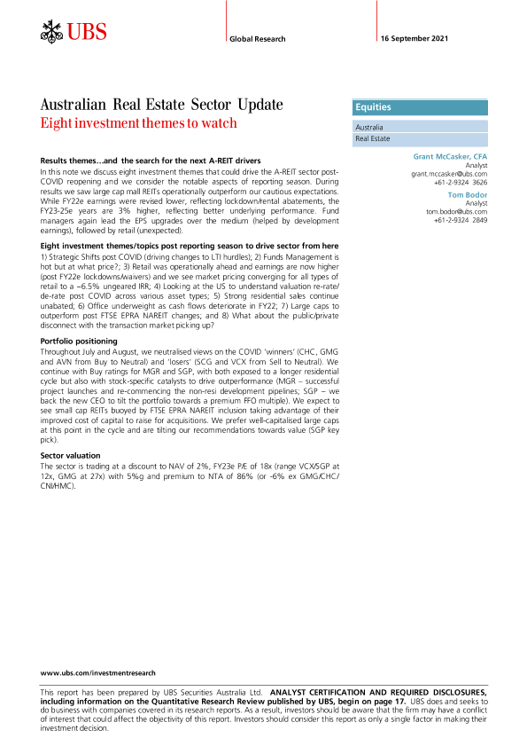 【UBS Securities Australia Ltd.】【20210916】澳大利亚房地产:八个值得关注的投资主题-26页