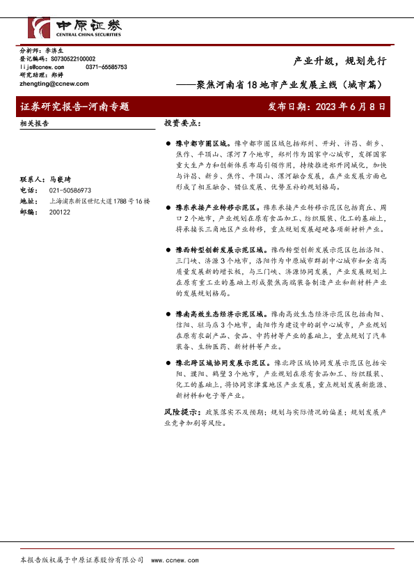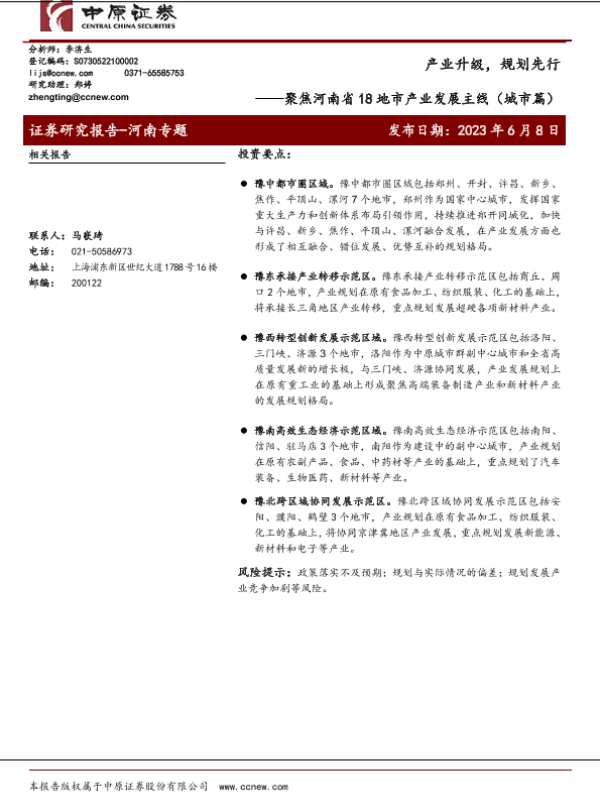 【中原证券】【20230608】聚焦河南省18地市产业发展主线(城市篇):产业升级,规划先行-44页