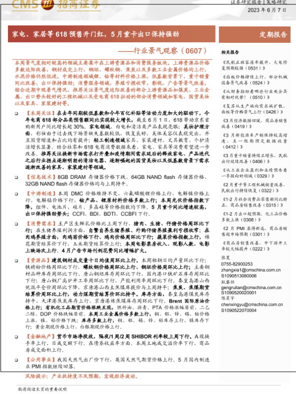 【海通证券】【20230607】行业景气观察:家电、家居等618预售开门红,5月重卡出口保持强劲-26页