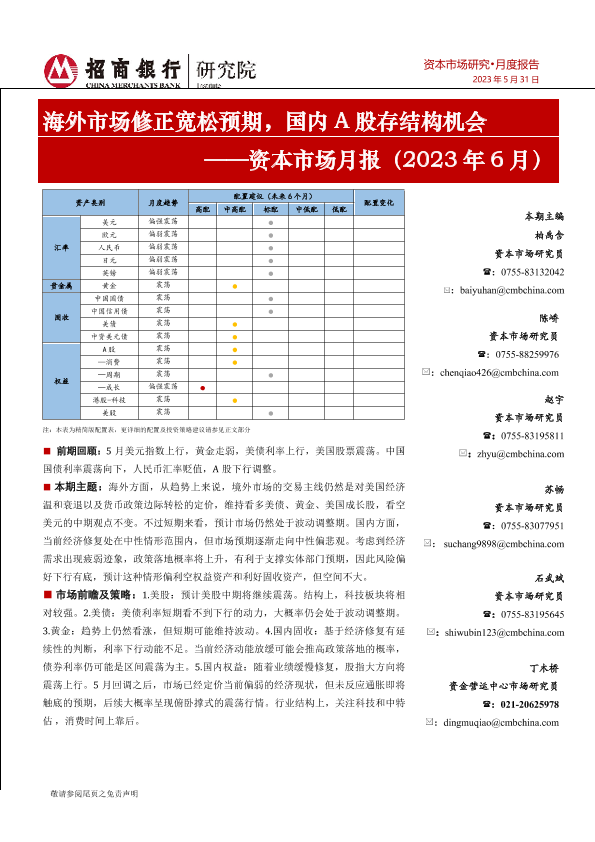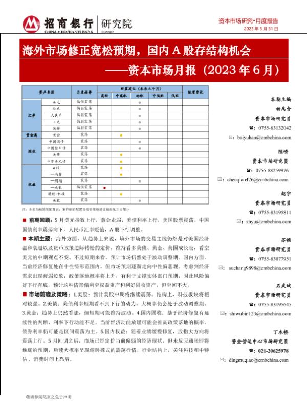 【招商银行】【20230531】资本市场月报(2023年6月):海外市场修正宽松预期,国内A股存结构机会-26页