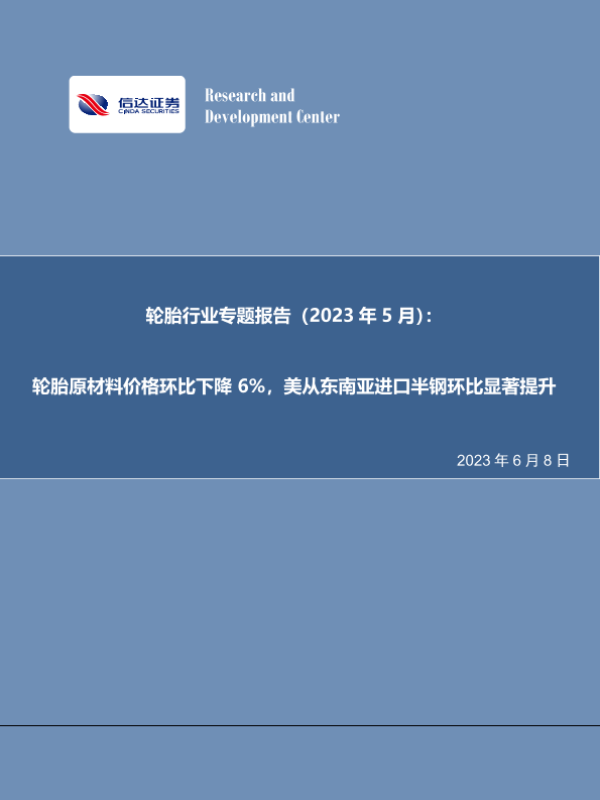 【信达证券】【20230608】轮胎原材料价格环比下降6%,美从东南亚进口半钢环比显著提升-25页