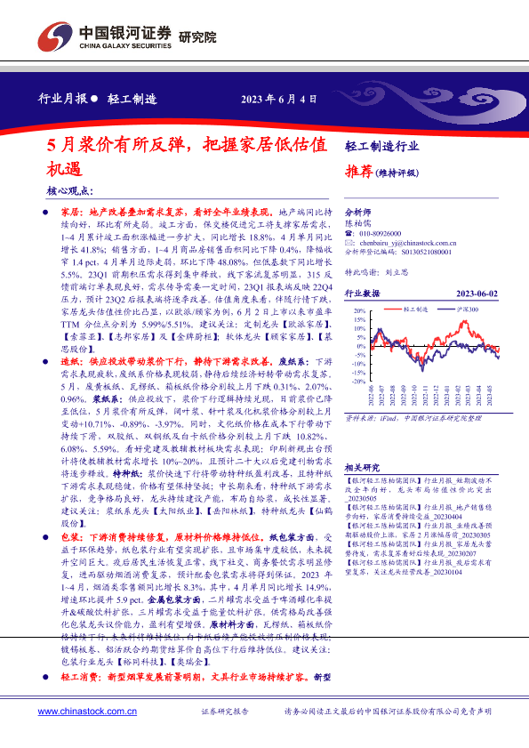 【银河证券】【20230604】轻工制造行业月报:5月浆价有所反弹,把握家居低估值机遇-22页