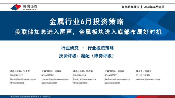 【国信证券】【20230604】金属行业6月投资策略:美联储加息进入尾声,金属板块进入底部布局好时机-43页