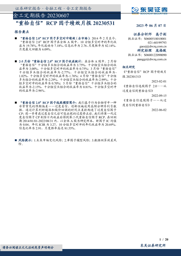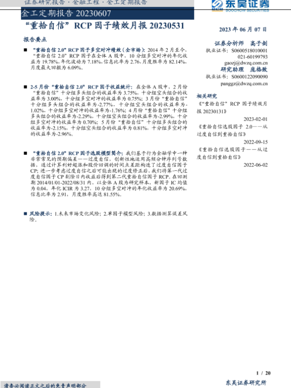 【东吴证券】【20230607】金工定期报告:“重拾自信”RCP因子绩效月报-20页