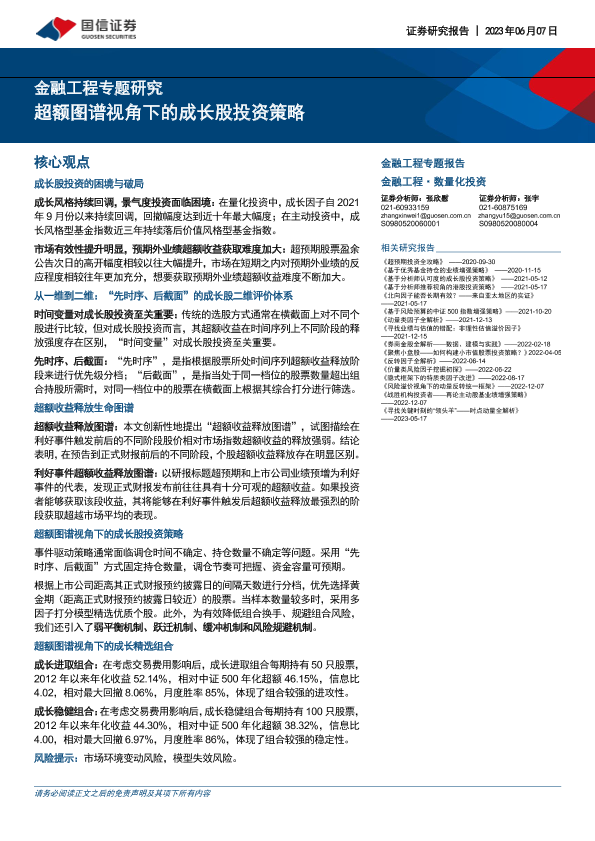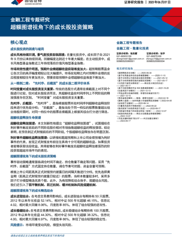 市场分析 成长股投资 超额收益 量化投资 金融工程