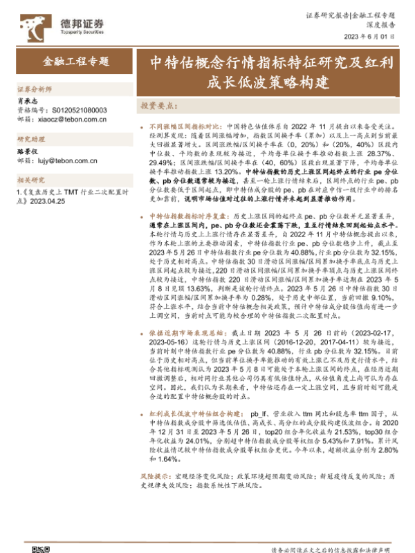 【德邦证券】【20230601】金融工程专题:中特估概念行情指标特征研究及红利成长低波策略构建-18页
