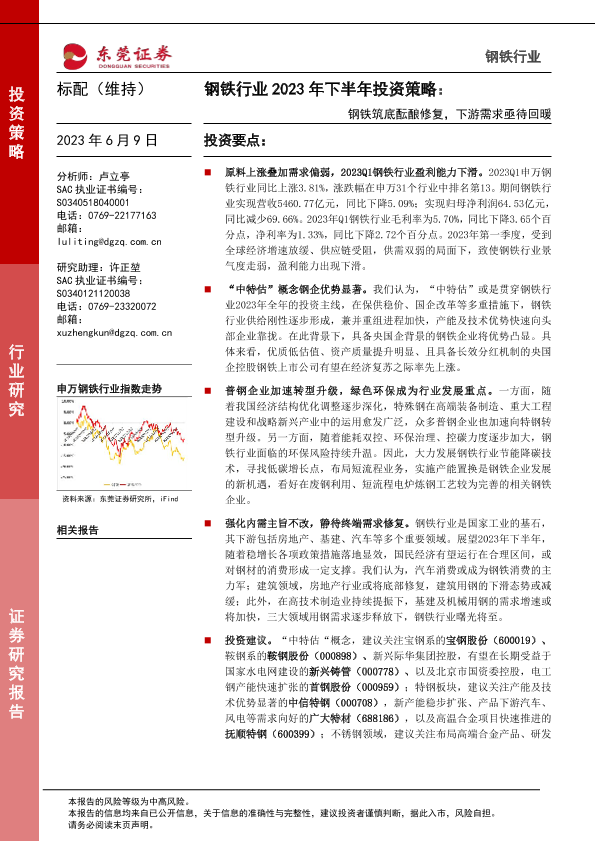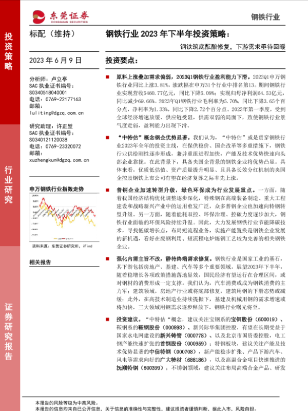 【东莞证券】【20230609】钢铁行业2023年下半年投资策略:钢铁筑底酝酿修复,下游需求亟待回暖-33页