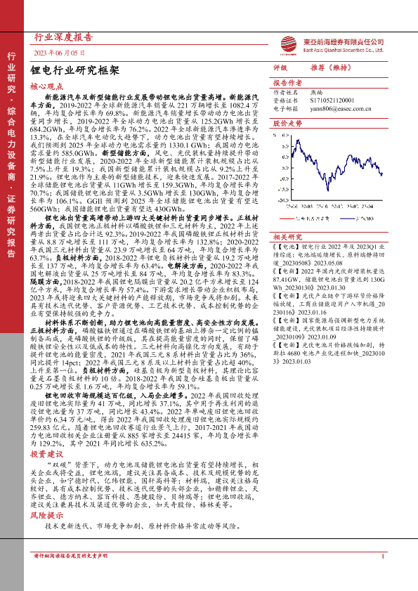 【东亚前海证券】【20230605】锂电行业研究框架-46页