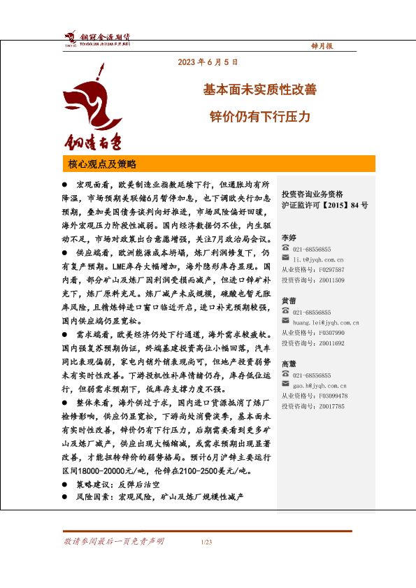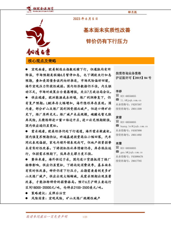 【铜冠金源期货】【20230605】锌月报:基本面未实质性改善,锌价仍有下行压力-23页