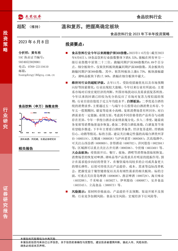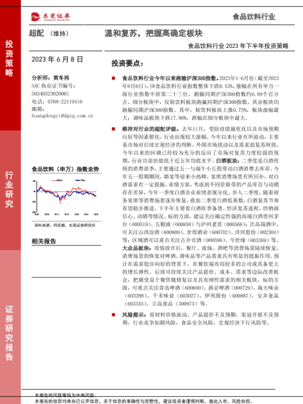 【东莞证券】【20230608】食品饮料行业2023年下半年投资策略:温和复苏,把握高确定板块-32页