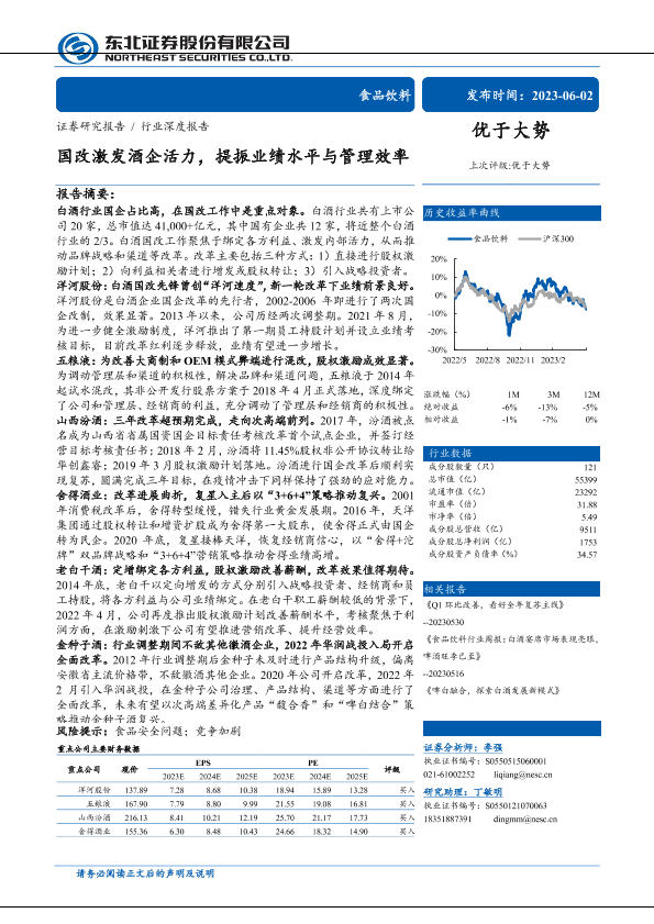 【东北证券】【20230602】食品饮料行业深度报告:国改激发酒企活力,提振业绩水平与管理效率-35页