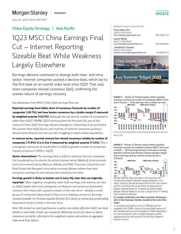 【Morgan Stanley】【20230529】Morgan Stanley-China Equity Strategy 1Q23 MSCI China Earnings Final Cut – Internet Reporting-20页
