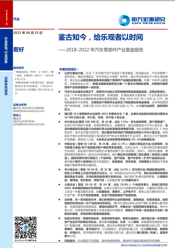 【申万宏源】【20230615】2018_2022年汽车零部件行业产业复盘报告:鉴古知今,给乐观者以时间-33页