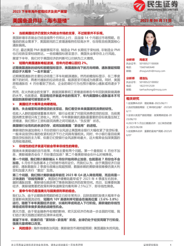 【民生证券】【20230613】2023下半海外宏观经济及资产展望:美国衰退并非“海市蜃楼”-15页