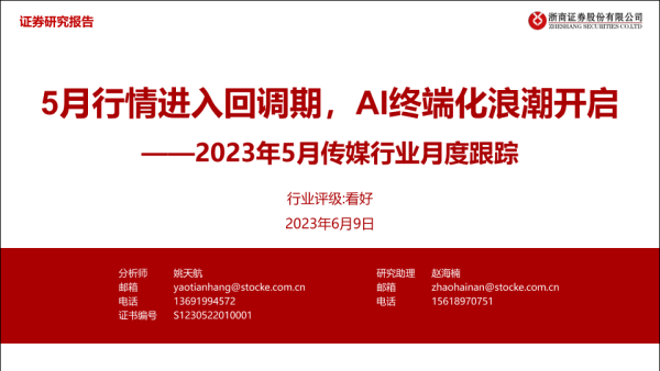 【浙商证券】【20230609】2023年5月传媒行业月度跟踪:5月行情进入回调期,AI终端化浪潮开启-36页