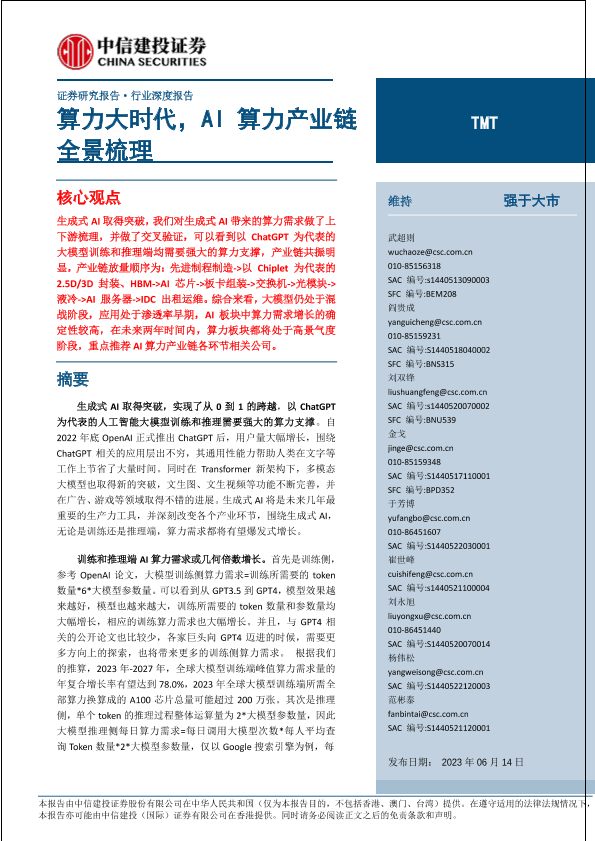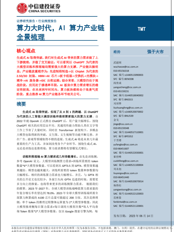 【中信建投证券】【20230614】TMT行业深度报告:算力大时代,AI算力产业链全景梳理-99页
