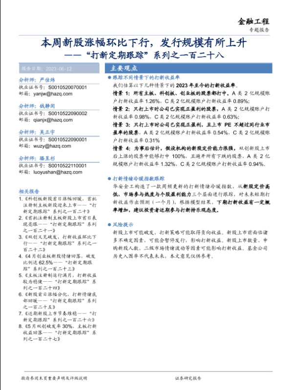 【华安证券】【20230612】“打新定期跟踪”系列之一百二十八:本周新股涨幅环比下行,发行规模有所上升-21页