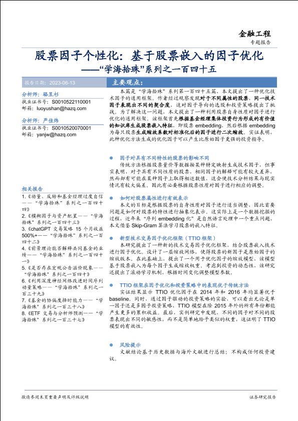 【华安证券】【20230613】股票因子个性化:基于股票嵌入的因子优化-19页