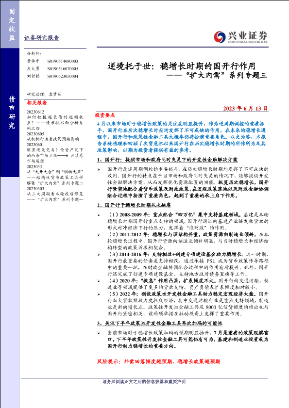 【兴业证券】【20230613】“扩大内需”系列专题三:逆境托于世,稳增长时期的国开行作用-21页