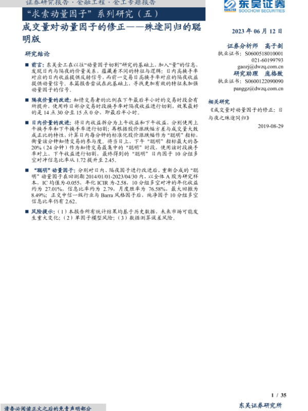 【东吴证券】【20230612】“求索动量因子”系列研究(五):成交量对动量因子的修正-殊途同归的聪明版-35页