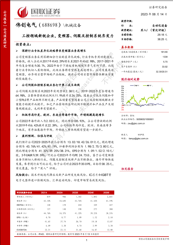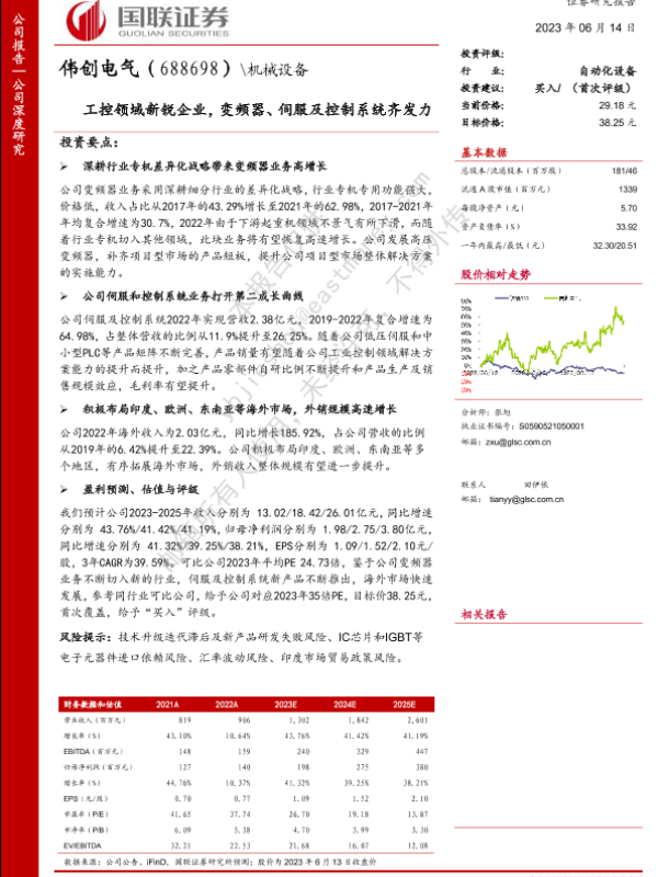 【国联证券】【20230614】伟创电气(688698)工控领域新锐企业,变频器、伺服及控制系统齐发力-29页