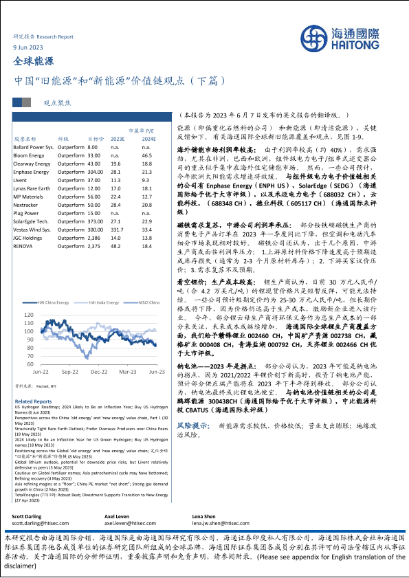 【海通国际】【20230609】全球能源行业:中国“旧能源”和“新能源”价值链观点(下篇)-43页