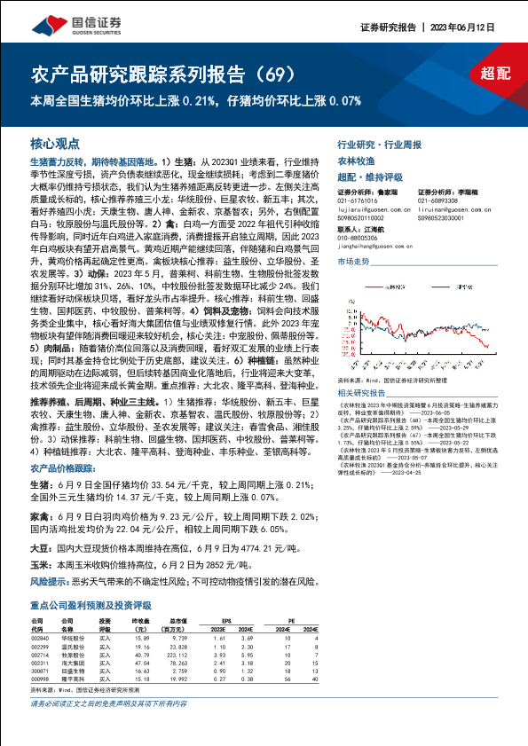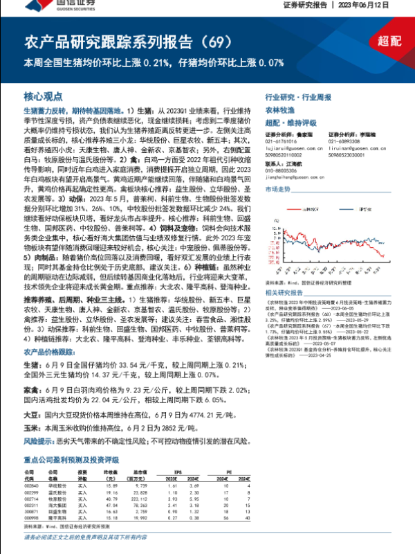 【国信证券】【20230612】农产品研究跟踪系列报告(69):本周全国生猪均价环比上涨0.21%,仔猪均价环比上涨0.07%-21页